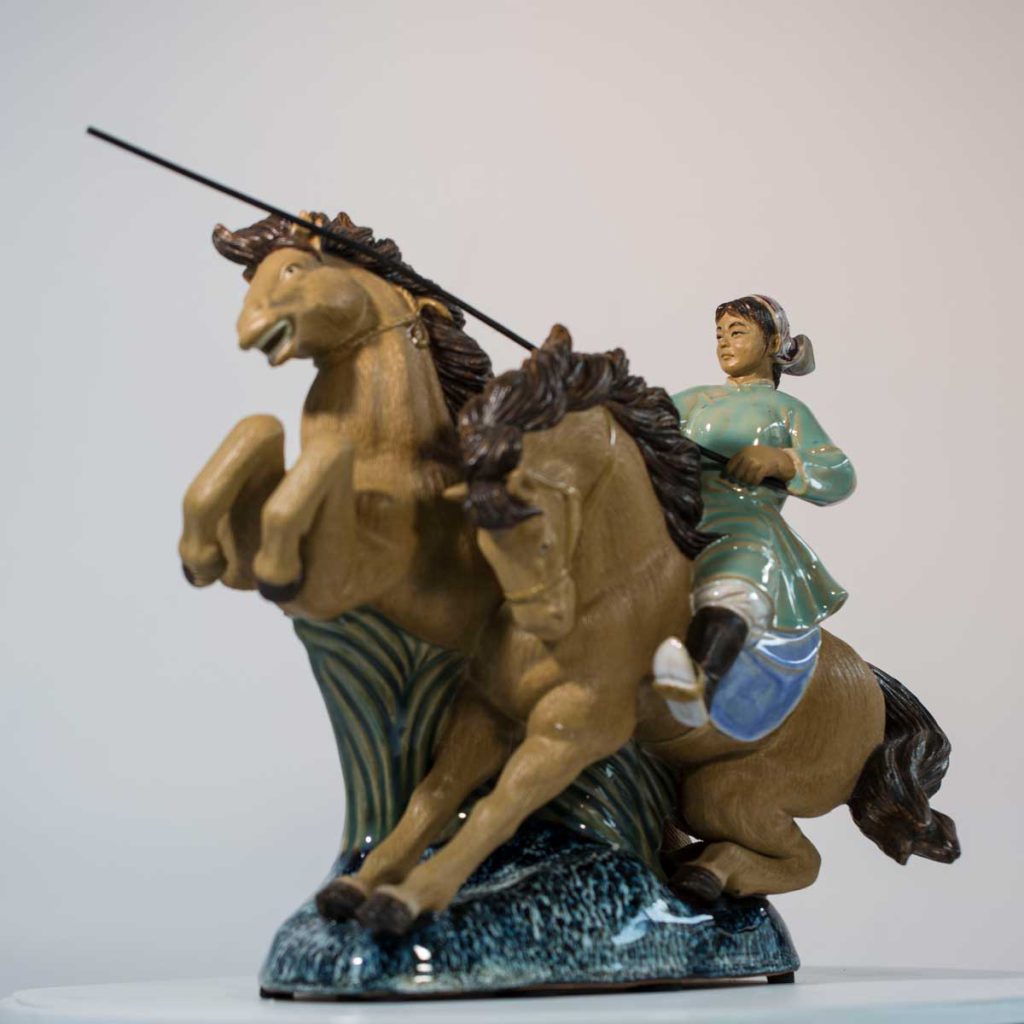 将石湾“釉色装饰”与民族题材结合,突破传统陶塑“单色釉”的审美边界