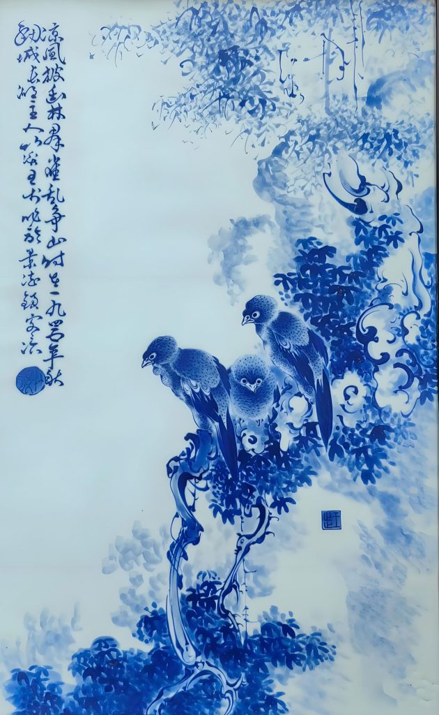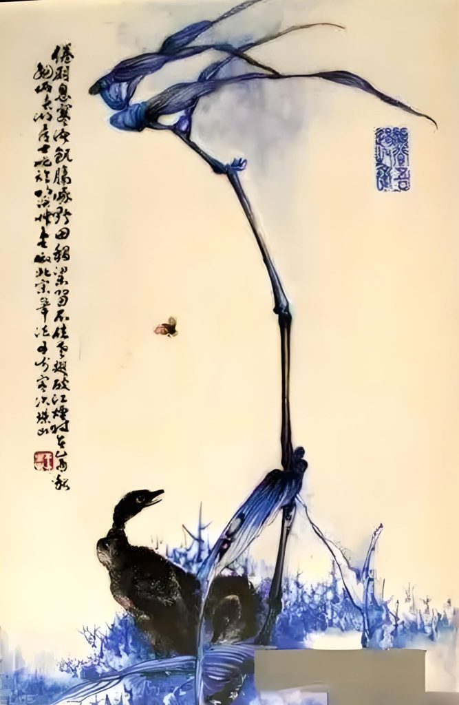 他将八大山人的孤绝意境、黄慎的写意笔法植入青花,以“诗书画印一体”的文人画体系改造瓷绘,既延续了传统文人艺术的精神内核,又以现代审美意识重构了瓷绘的视觉表达,为传统工艺注入了“个性化、意境化”的现代艺术特质。